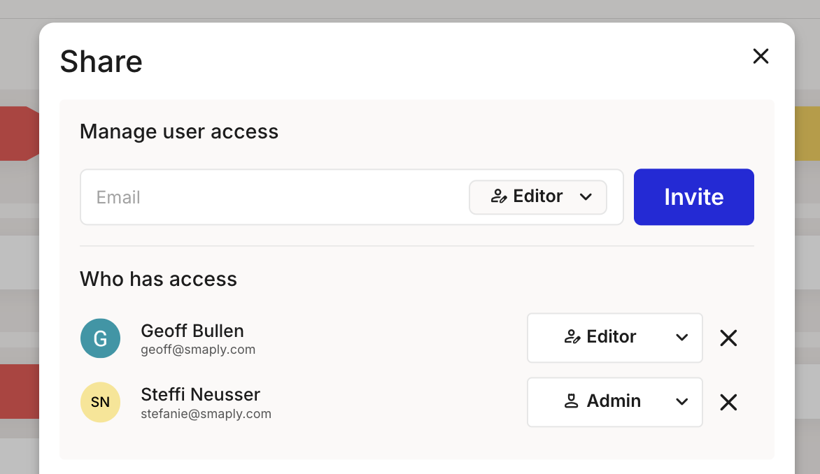 3. Choose their permission level (Admin, Editor or Viewer).