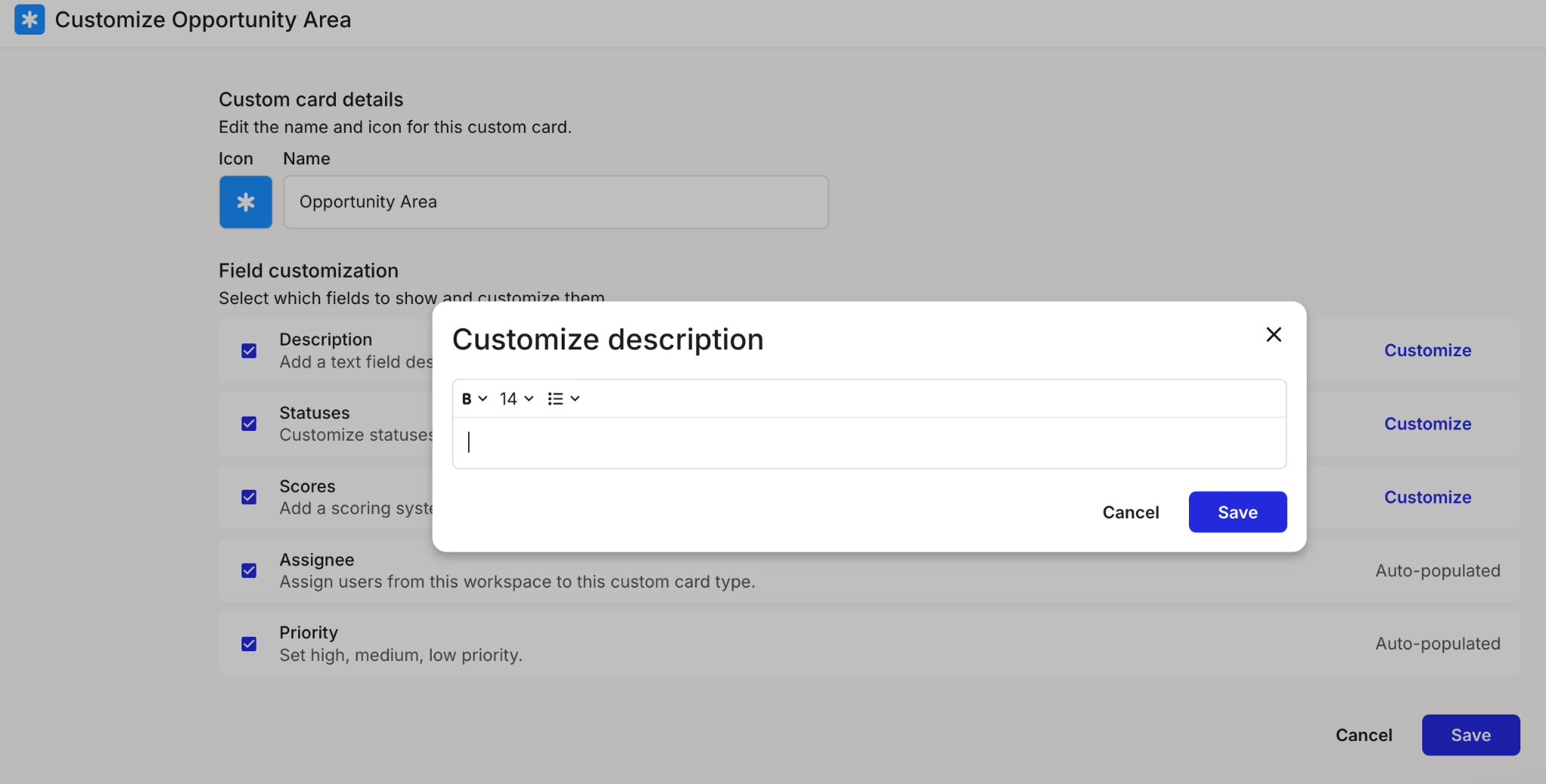 * Customizable portfolio items: allowing teams to customize opportunity, pain point, and solution representations to their workflows