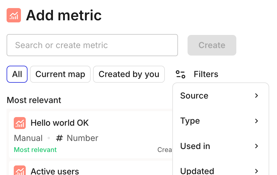 * We added **quick filters** for Portfolio items and Metrics in the Add/create modal